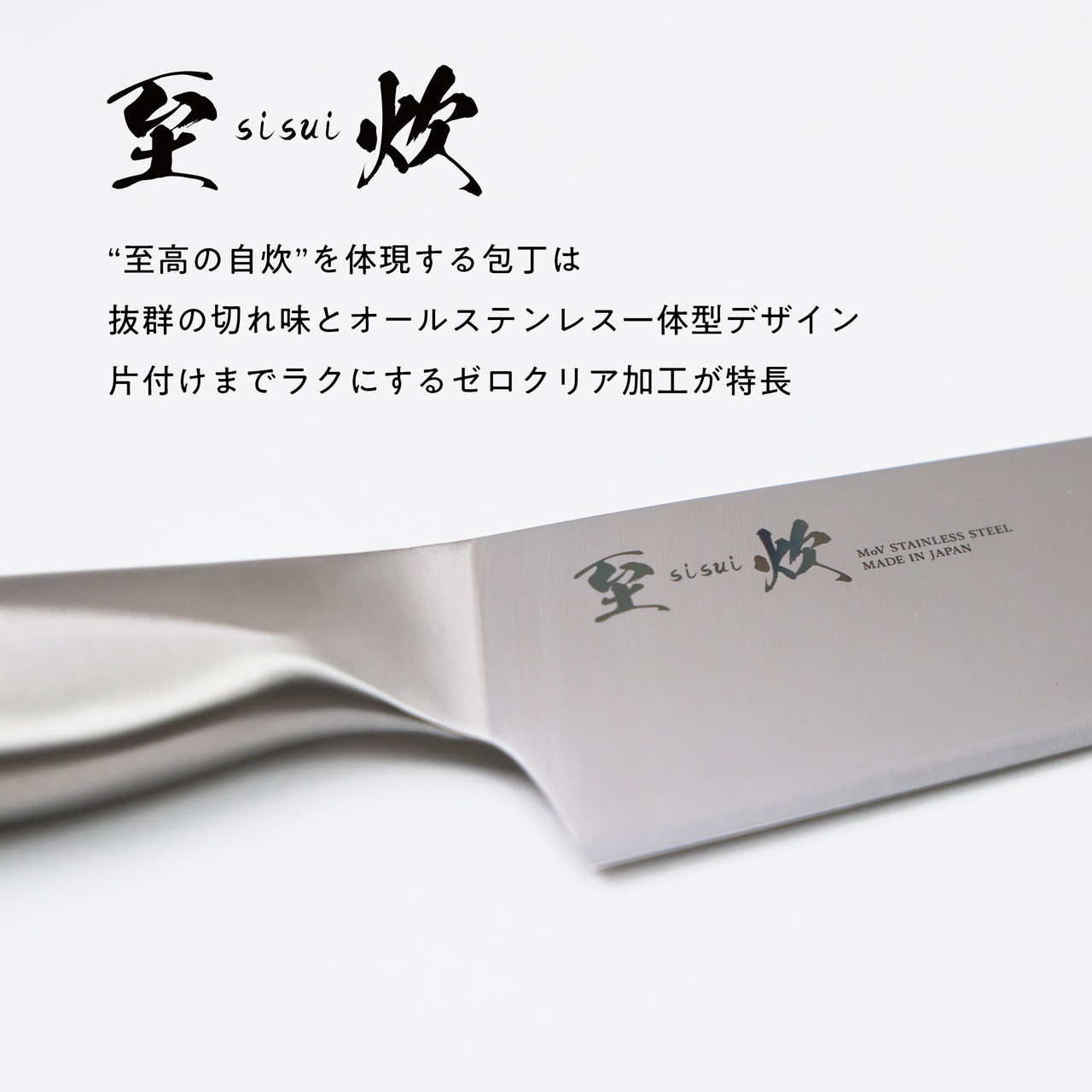 高級感のあるシームレスな形状で、プロ仕様にも使われる高品質刃物鋼です。
