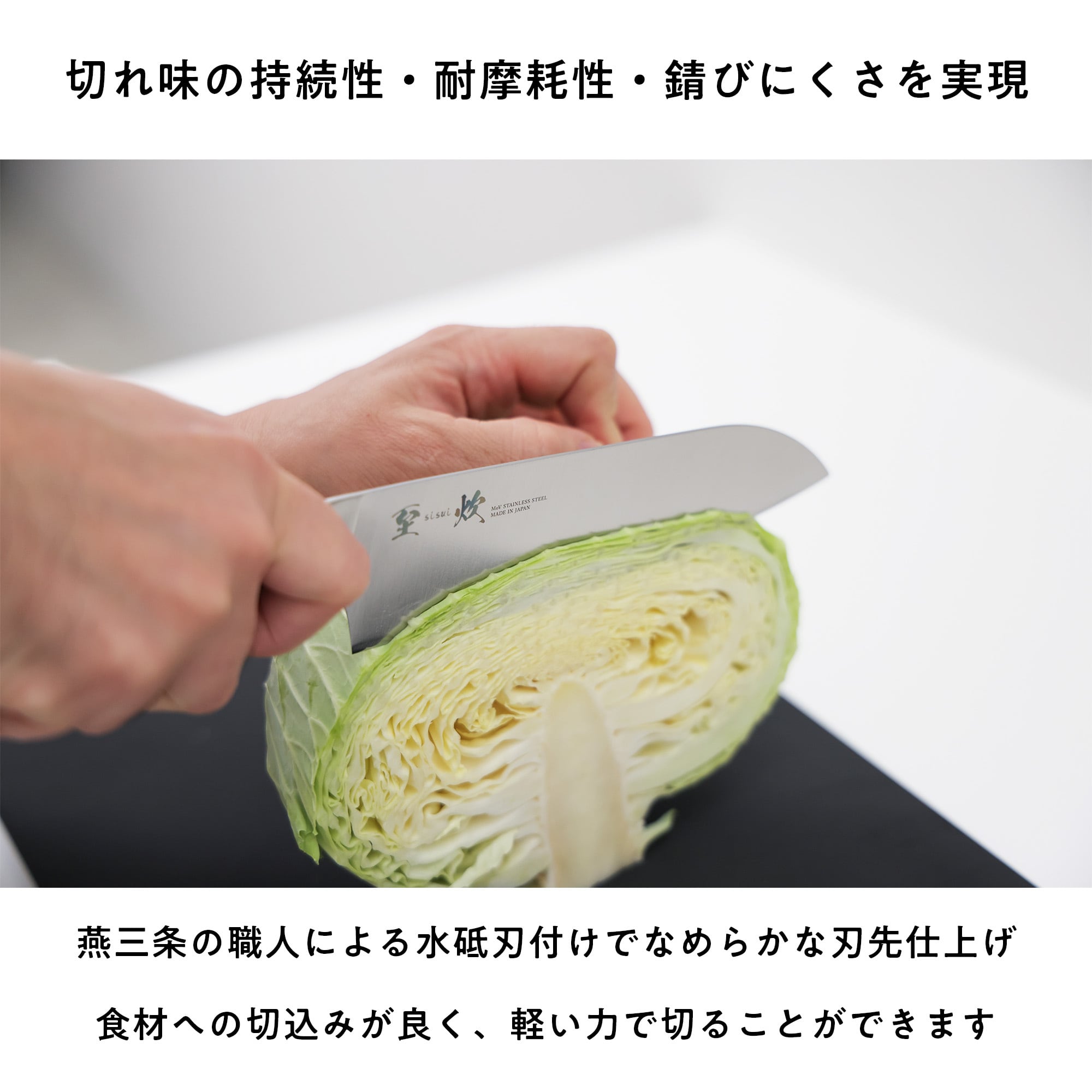 切れ味の持続性、耐摩耗性、サビにくさを実現