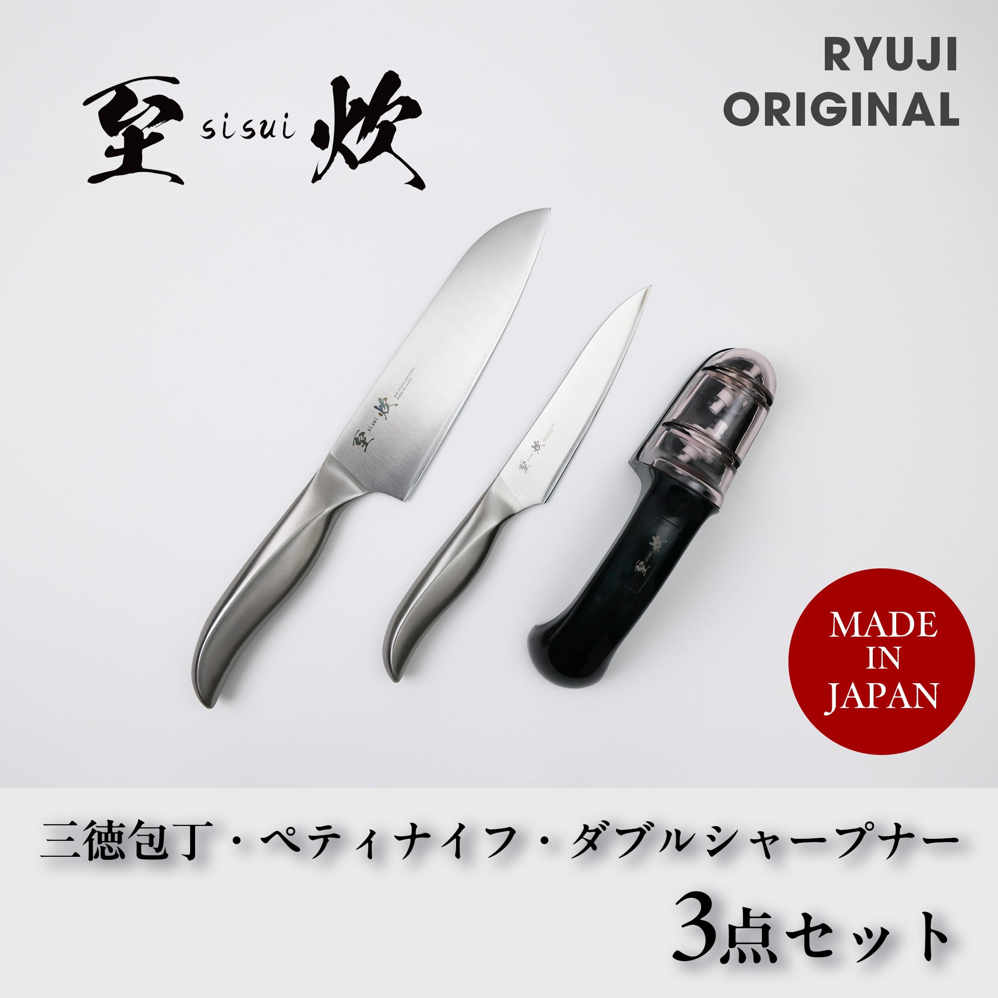 【3点セット】リュウジの三徳包丁・ペティナイフ・ダブルシャープナー